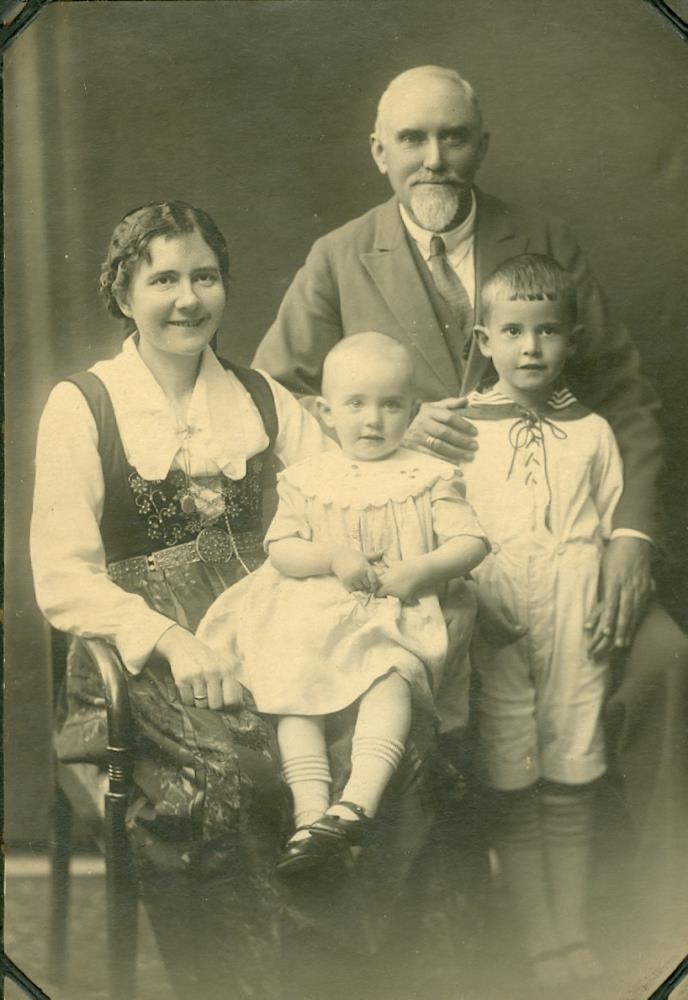 Fjögurramanna fjölskylda uppstillt á mynd.