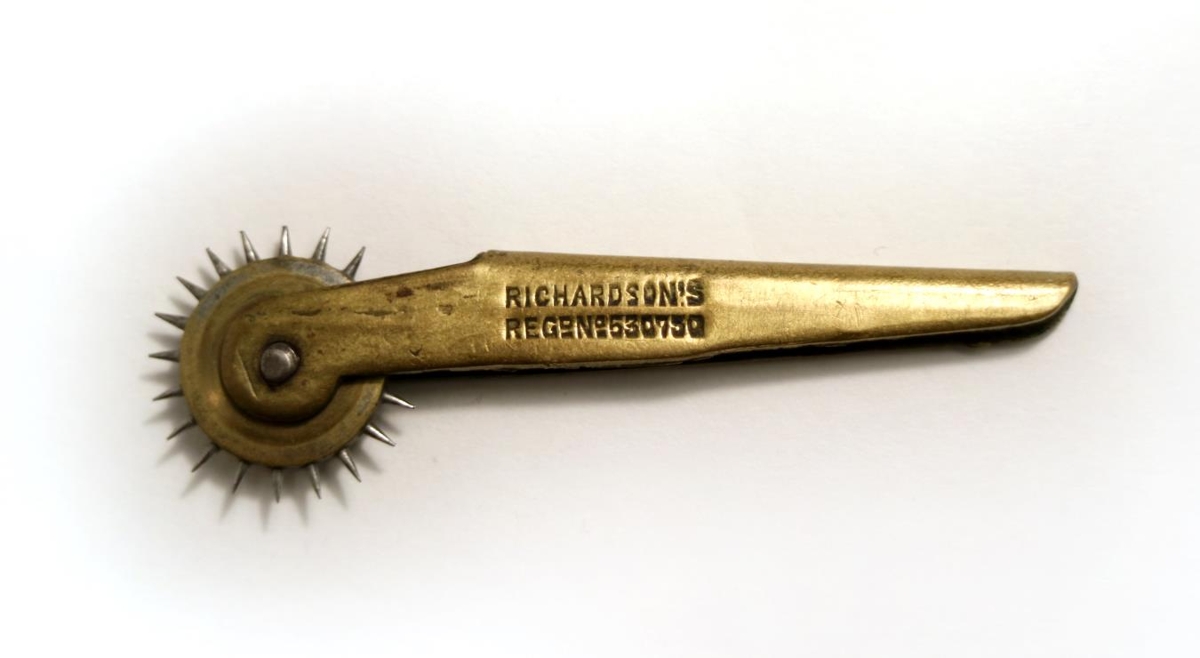 Sníðahjól / sníðajárn úr koparblöndu, merkt: RICHARDSON'S REG. NO. 530730. Það er frekar smátt, eða 7,7 cm langt en hjólið sjálft 2,3 cm í þvermál. Það er úr eigu Svövu Lárusdóttur (1911-2002), en hún var móðir gefanda. Svava var mikil saumakona og starfaði m. a. á saumastofunni Feldinum, Þingholtsstræti 27 í Reykjavík. Ætla má að sníðajárnið sé frá því um eða eftir miðja síðustu öld.