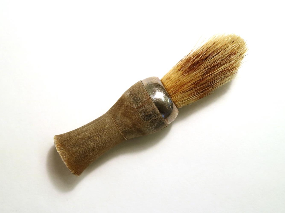Skeggbursti (rakbursti) með ljósum hárum og skafti úr renndu horni. Skaftið er með skrúfgangi fyrir miðju en ekki er ljóst til hvers það er svona tvískipt. Ef til vill hefur þar mátt geyma lítinn mola af sárasteini (vítissteini / græðisteini) til að stöðva blæðingu ef menn skáru sig við raksturinn. Efst á skafti burstans, við hárin, er krómaður málmhólkur. Slíkir burstar voru notaðir til að bera skeggsápu (raksápu) á andlit fyrir rakstur. Ætla má að burstinn sé frá því um miðja tuttugustu öld. Hann er í góðu ástandi en beinið er þó orðið nokkuð þurrt. Sjá ennfremur rakáhöld nr. Þjms. 2015-45-6.