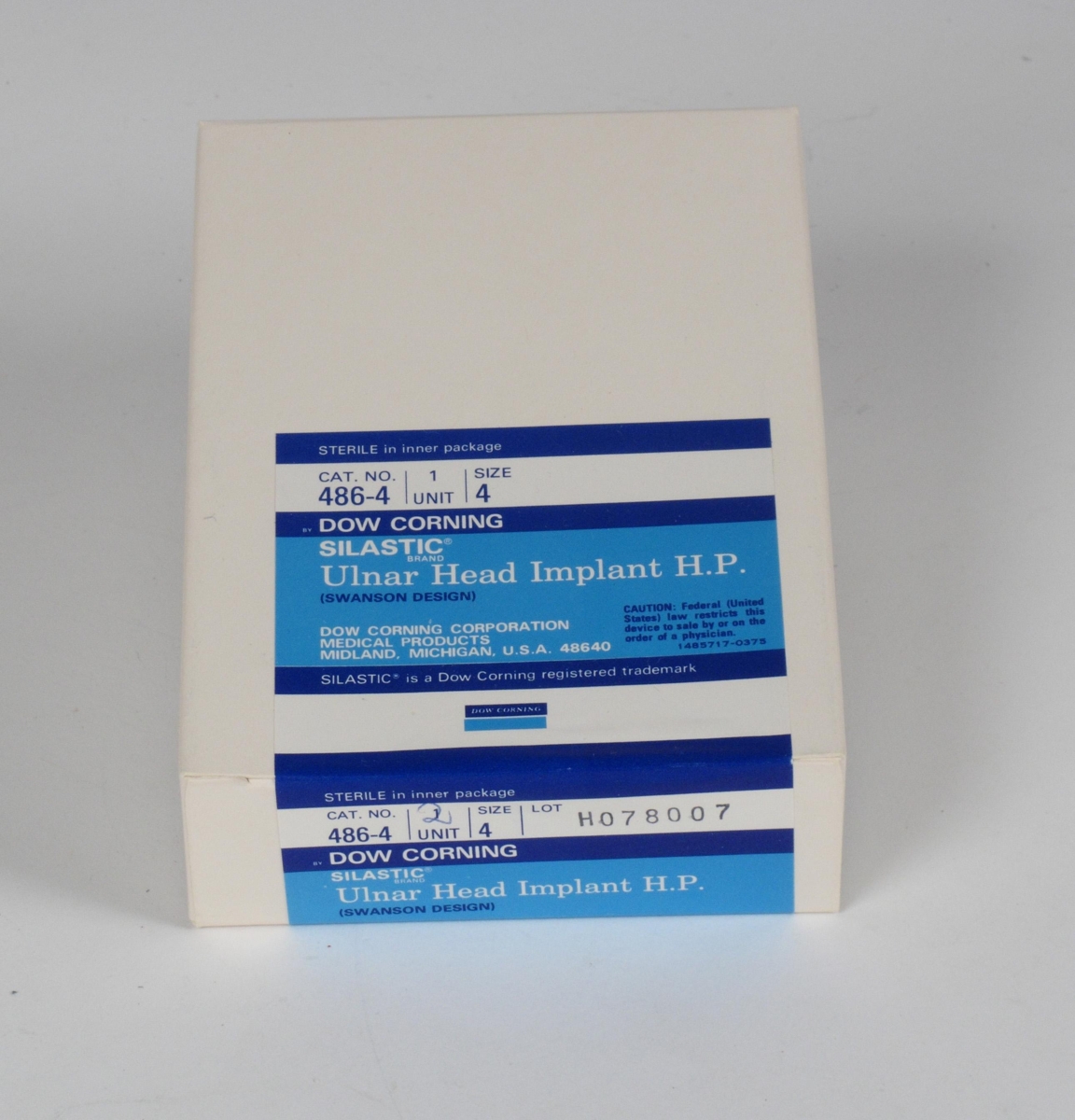 Gerviliður, olnbogaliður. Halldór Baldursson færði safninu eftirtaldar tegundir gerviliða úr eigu Landspítalans: Ulnar head implant cat. no. 486-4. Mál og þyngd: 4.