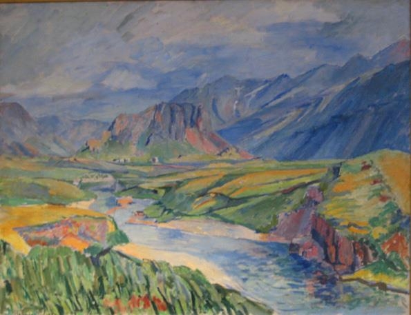 Lítill vélritaður miði settur á með kennaratyggjó: (34), Jón Þorleifsson, LÍ 275, Úr Hornafirði, 1927, kOlía, 65x85 cm [tekinn af 11.10.2011 og settur í möppuna Heimildir í listaverkadeild].