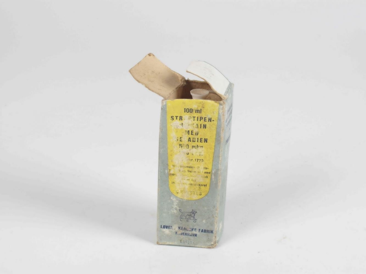 Gul túpa, á kassanum stendur: Opbevares ved / Almindelig temperatur / OMBYSTES.