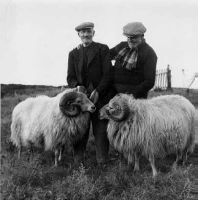 Á myndinni eru tveir glæsilegir hrútar, tveir karmlenn halda þeim vegna myndatökunnar. Mennirnir eru til vinstri: Þórður Björnsson, hann kom fyrst til Hafnarfjarðar árið 1898 ásamt unnustu sinni Guðbjörgu Jónsdóttur sem lést 1924. Þórður kvæntist þá Ingveldi Bjarnadóttur árið 1926 og komu þau sér upp snotru húsi sem enn stendur við Hverfisgötu 9. Til hægri er Gunnlaugur Stefánsson kaupmaður. Kjörorð hans var "Gunnlaugur sér um sína". Gunnlaugsbúð var rekin frá 1920 til 1957.