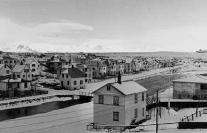 Görumynd af Hafnarfirði. Húsin við Hamarskotslæk blasa við. Esjan og Þórsberg í bakgrunni. Í forgrunni er gamla Brautarholt (Lækjargasta 18) og Mjólkurbúið á horninu á Öldugötun og lækjargötu. Bæði húsin hafa veriðrifin, í stað Brautarholts standa tvö ný hús, annað nefnt "Brautarholt. Þar sem mjólkubúið stóð eru nú þrír mjólkurbrúsar.