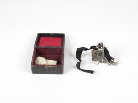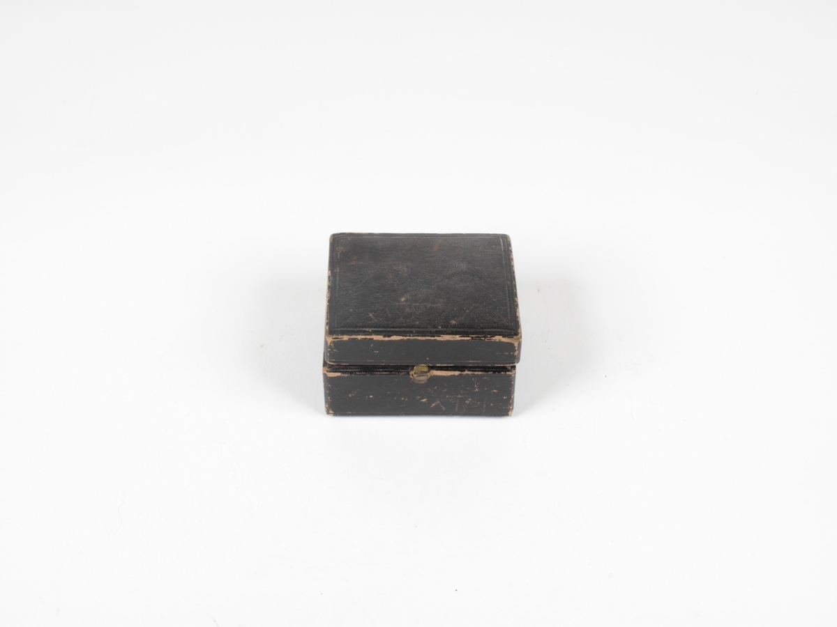 Er í svörtum leðurklæddum stokk, silki og flauels fóðruðum. Ekkert framleiðandamerki. Kominn í læknadeild fyrir 1937 (JS). Var meðal hluta sem fluttir voru úr Alþingishúsinu.