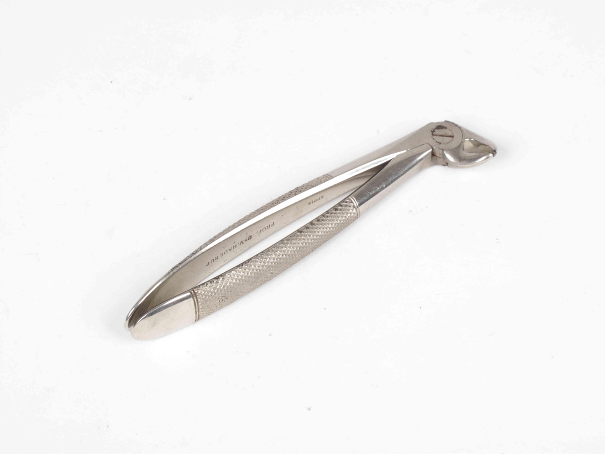 Tanntöng, krómuð og merkt: C.ASH & SONS/ENGLAND. PROF. DR. V. HADERUP.. Nyrop: Rabenschnabelleg en kjaftur boginn til hægri. Úr eigu Bjarna Snæbjarnarsonar.