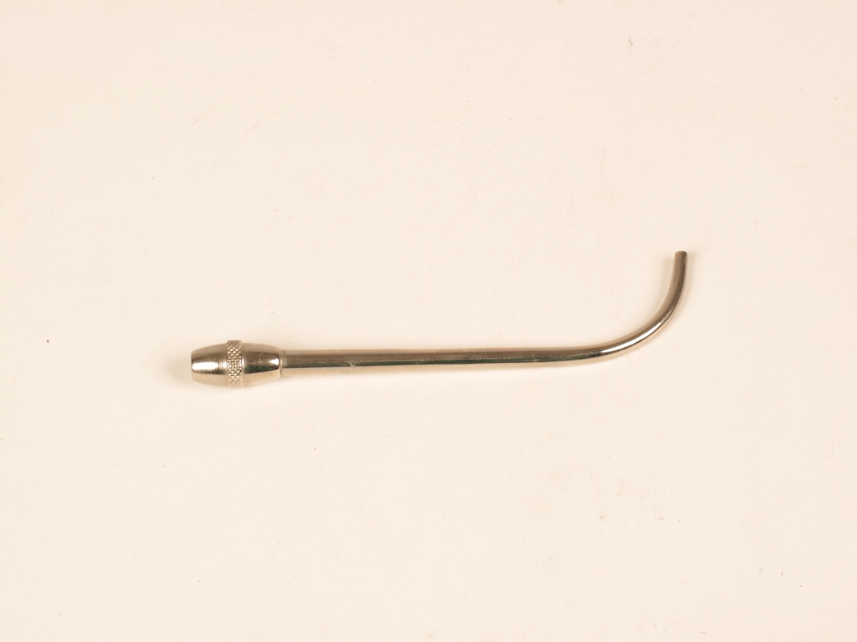 Bogin skolpípa, mjókkandi að oddi og olífulaga nærenda til að ganga upp á mótstykki. Munpípa fyrir duftblásara. Gefin 23. janúar 1975. Sjá: Blöndal/Jónsson I 1970, bls. 183.