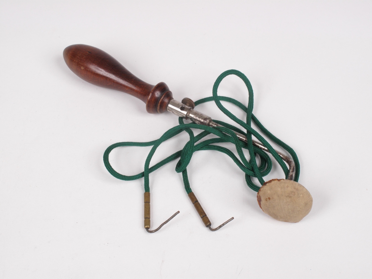 Elektroda, zink-ionizations. Á tréhandfangi með tengisnúru við inductionsspólu (hana vantar). Tilsvarandi tæki er á Árbæjarsafni frá Cornelius Knutsen. Úr eigu Bjarna Snæbjörnssonar læknis.