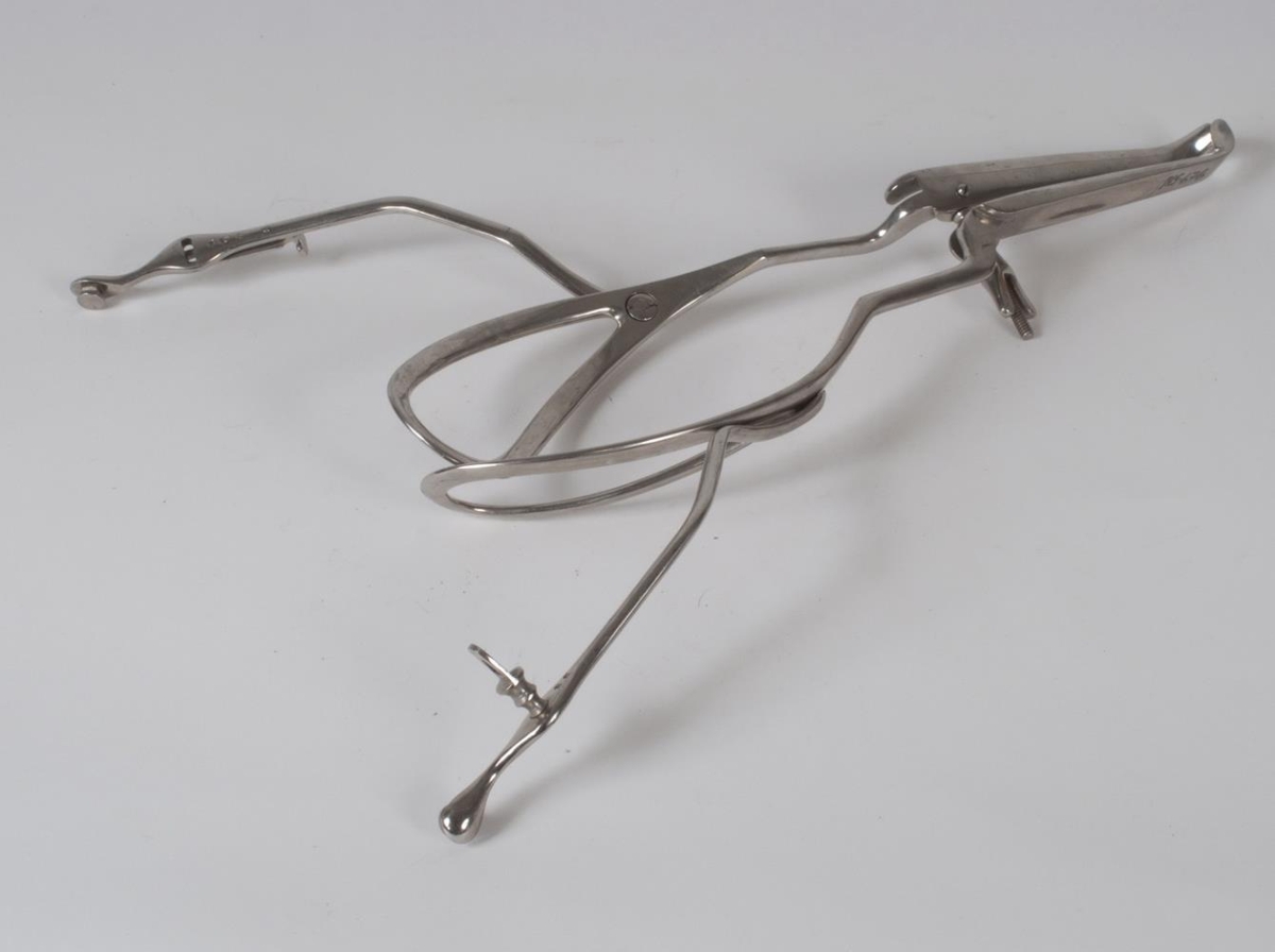 Fæðingartöng með öxuldrætti. Krómuð og ekkert framleiðandamerki. Gerð tangarblaða Simpson's (sjá Aesculap I, F-6205) en gerð handfanga og öxuldráttar önnur en í Aesculap I. Úr eigu Lárusar Jónssonar læknis. Sjá: Blöndal/Jónsson I 1970, bls. 536.
