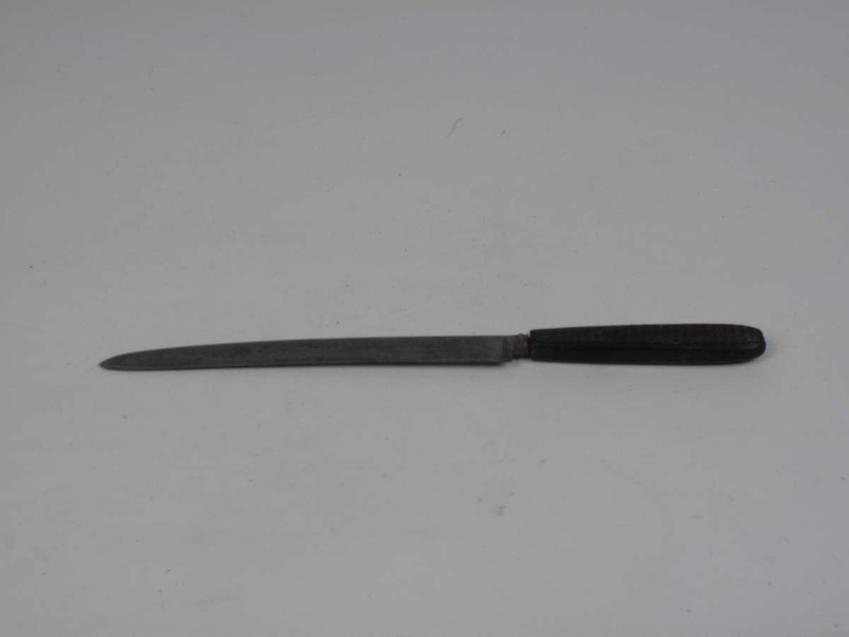 Íboginn, oddhvass amputationshnífur með hrjúfu íbenholt skafti. Merktur: C.NYROP/KJÖBENHAVN. Sömu gerðar og NS-52. Hnífurinn var lengi notaður sem brauðhnífur. Úr eigu Jóns læknis Rósenkranz. Sjá: Blöndal/Jónsson I 1970, bls. 446.