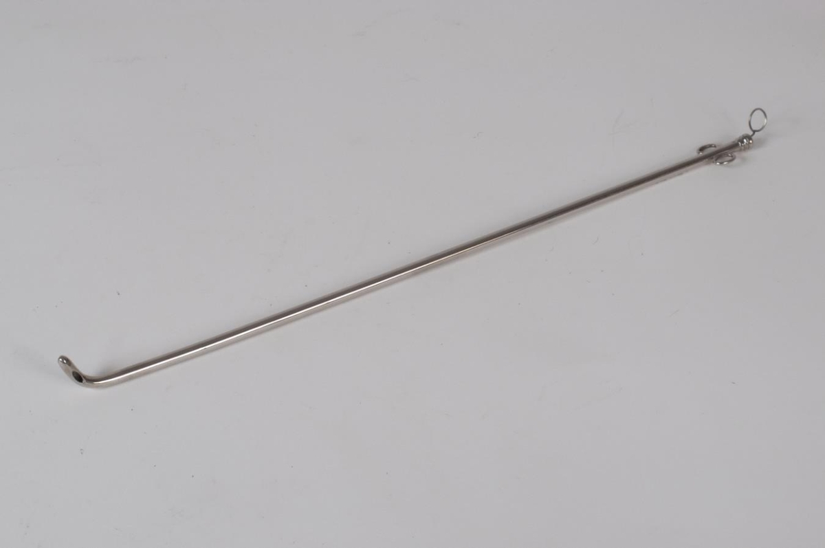 Málmþvagleggur fyrir karla, krómaður (V Mueller & Co, bls. 266, GO 516). Tæki úr Elliheimilinu Grund.