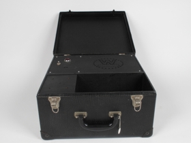 hornum W. Fremri hluti tösku er því skiftur. Vinstra megin er aflokað