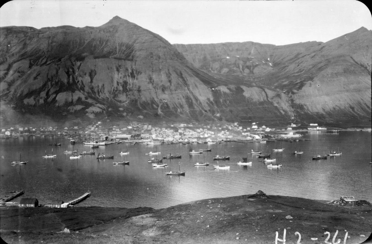 Síldarbátar bíða löndunar (eða í vari) á Siglufirði.