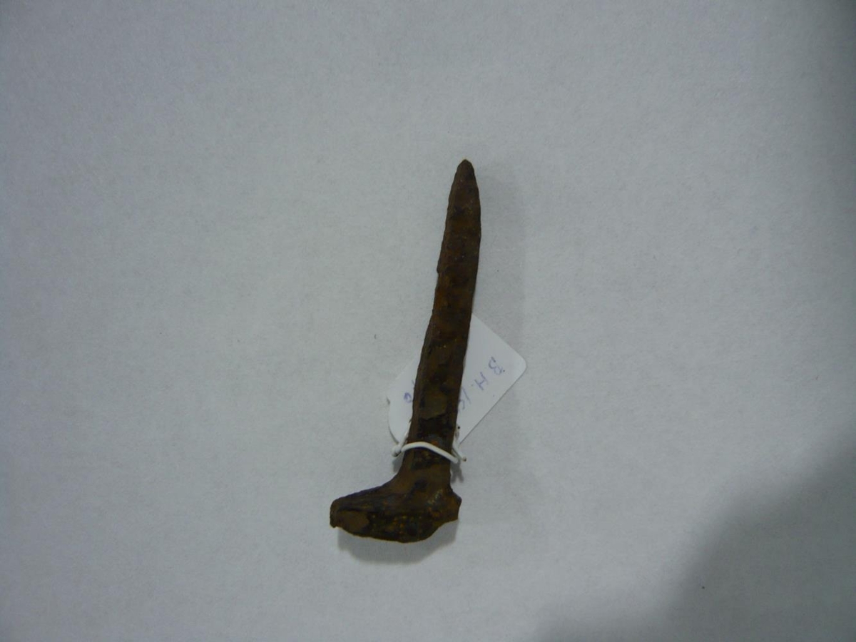 Naglinn fannst á Allansreit sem tilheyrði fiskverkunarstöðinni Svendborg, þar sem Hrafnista er nú. Svona naglar voru notaðir til að festa teina við efnismikil þvertré. Naglinn er tæpir 8 cm á lengd og hausinn er um 2 cm.