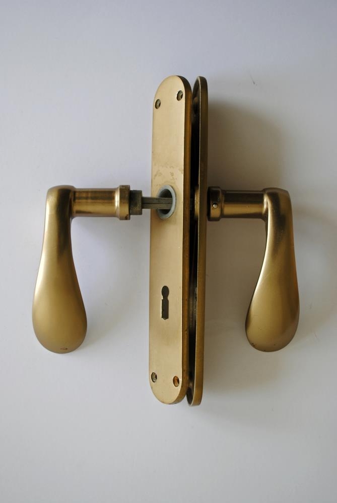 Hurðarhúnn hannaður af Arne Jacobsen. Með honum fylgja átta skrúfur og leiðbeiningar á A4 blaði.