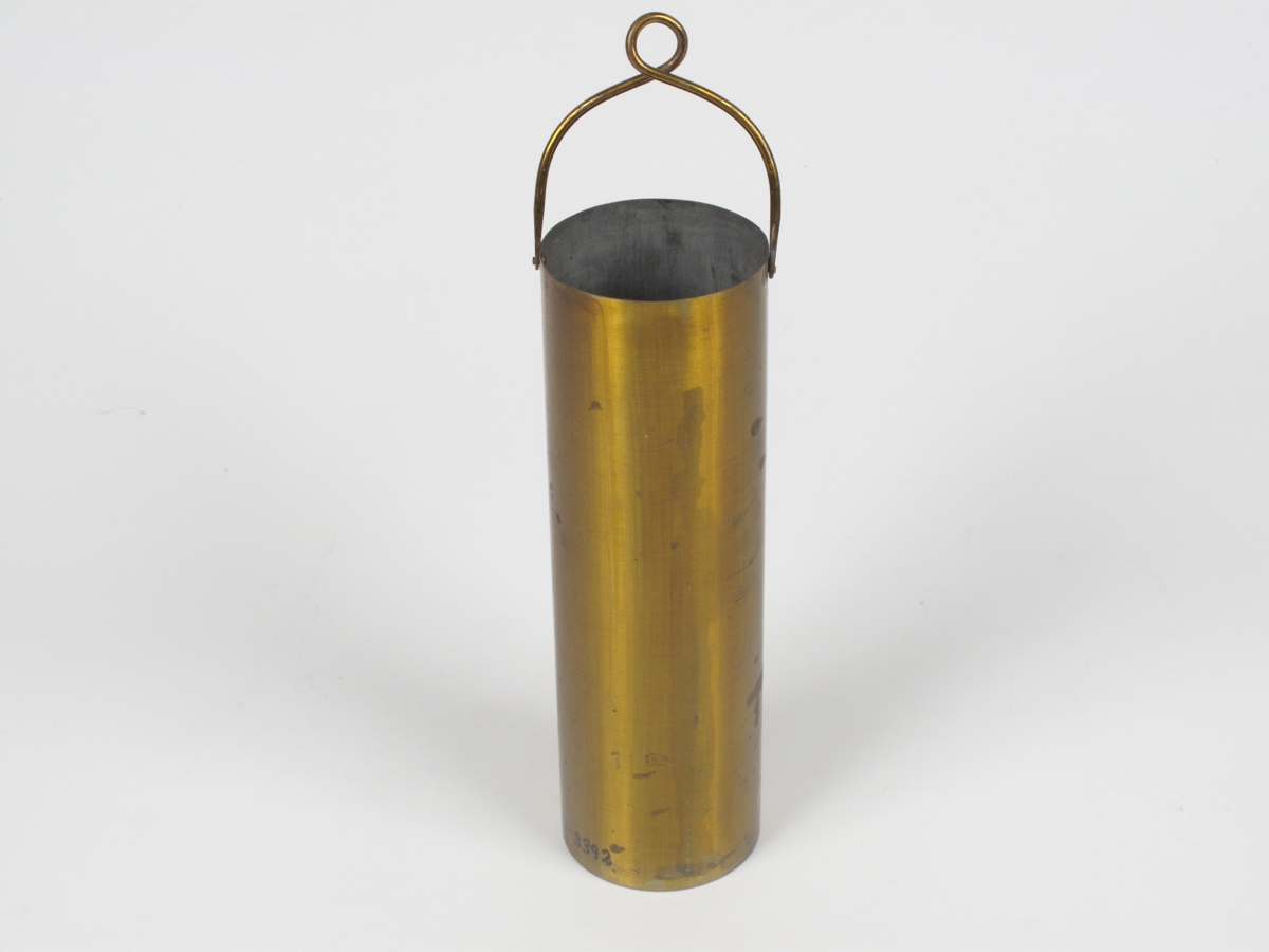 Látúnssívalningur tinaður að innan og með lykkju til að hengja á reistukrókinn, þvermál: 6 cm. Rún virðist líka fyrir annan minni sívalning en hann vantar. Sjá Griffin 66, bls. 63, 625-480V Cylinder.