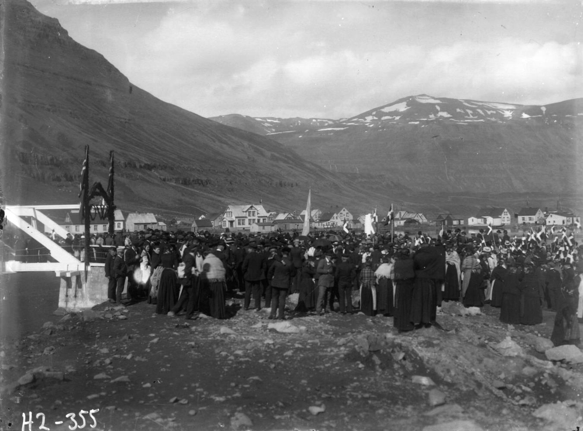 Afhjúpun minnisvarða um Ottó Wathne útgerðarmans Seyðisfirði.
