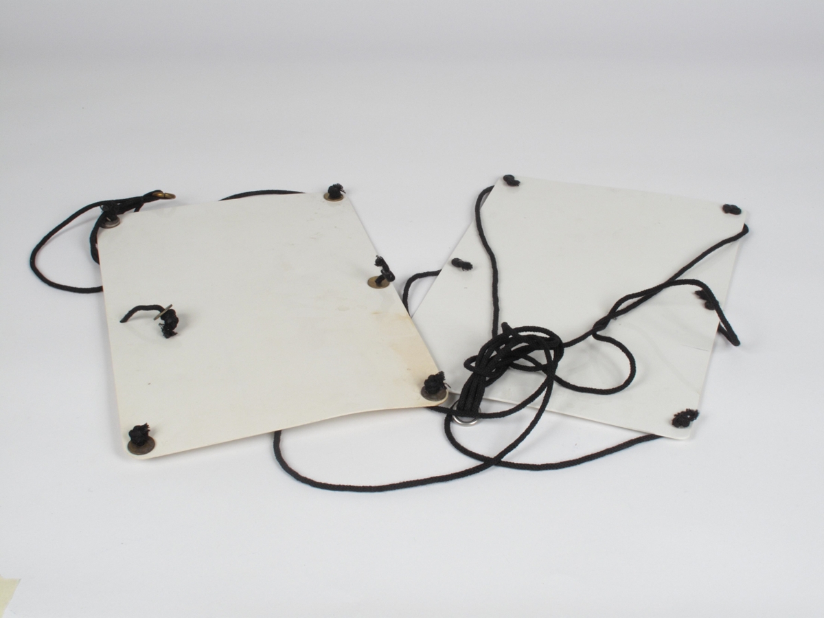 Á botni tösku undir neðra trogi eru tvær ferhyrndar plötur, úr hvítu gerfiefni svipuðu plasti, frá hvorri langhlið hennar ganga 3 svartar tausnúrur er koma saman í stálhring til að hengja á krók reislunar. Plöturnar munu ætlaðar til að vega líffæri á. Við plötu 3394B er birhringur.