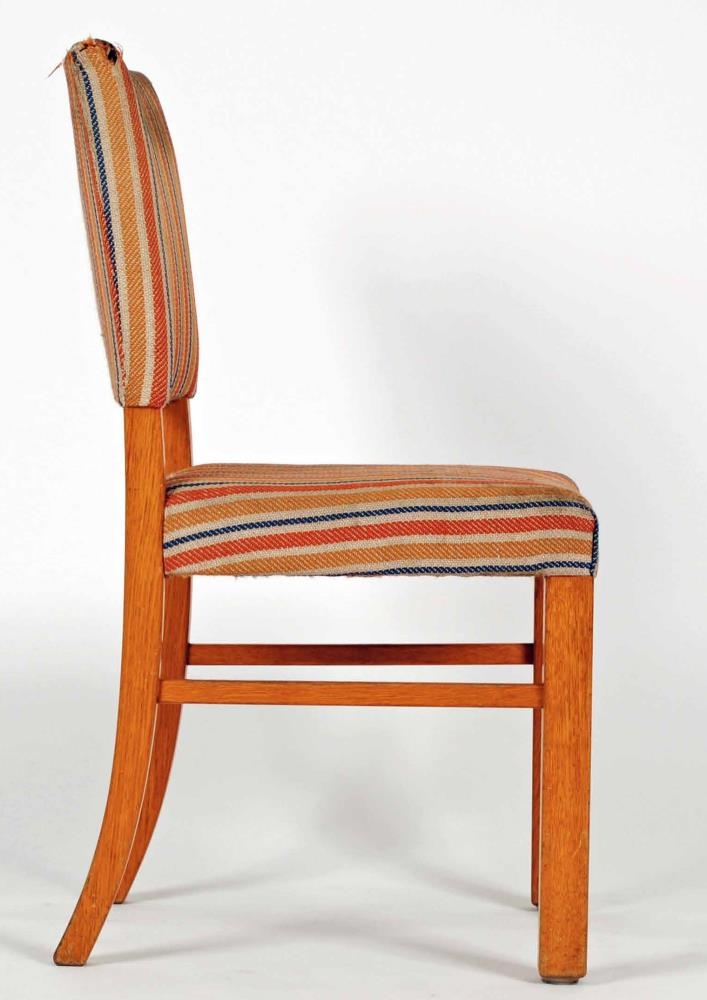"Húsgögnin eru smíðuð samkvæmt beiðni eftir teikningu Skarphéðins Jóhannssonar og áklæðið, sem er upprunalegt, handofið á Vefstofu Ernu Ryel, Austurstræti 17."