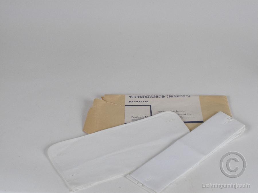Tvær breiddir 13 cm og 6.5 cm., af mansettum sem gerðar voru af Vinnufatagerð íslands. Hjúkrunarkonur notuðu slíkar mansettur á hjúkrunarbúninga.