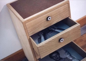 70 x 42 x 41 cm (kommóða), 39 x 194 cm (ljósmyndir).