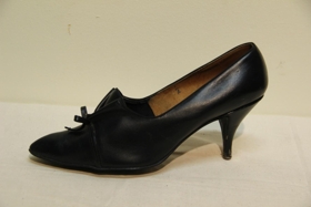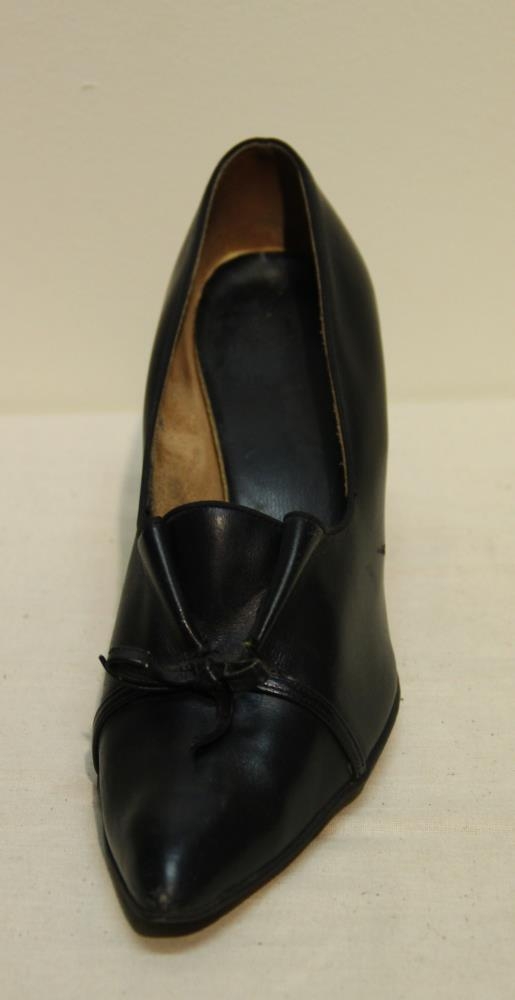 Skórinn er svartur með slaufu og háum hæl. Stærð 41.