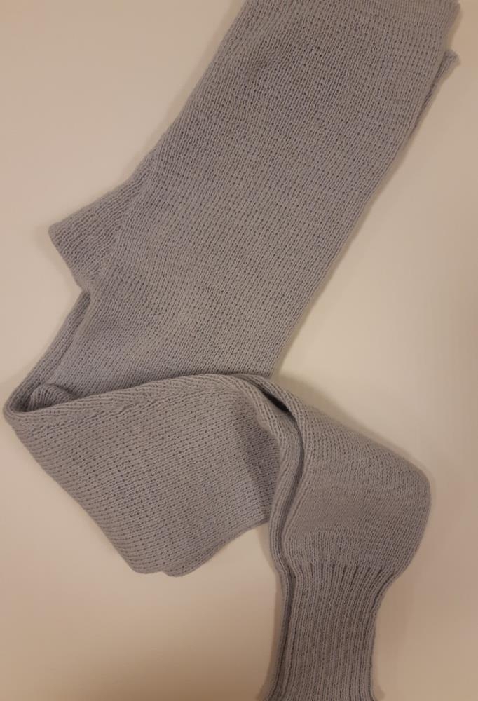 Drengjaprjónabrók vélprjónuð úr ljósgrábláu prjónabandi.