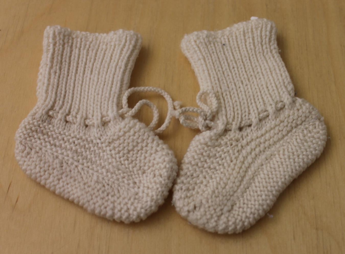 a) Ungbarnahosur - Hvítt ullargarn. Vélprjónað. Garðaprjón.