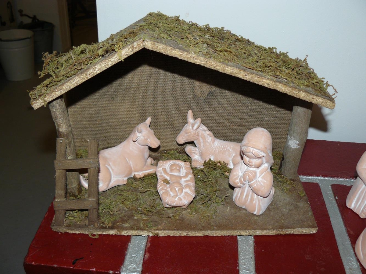 Jólanótt í Betlihem, fjárhús og níu leirstyttur. Þessir munir voru í eigu hjónanna á Nýjalandi í Garði, Sigrúnar Oddsdóttur (1916- 2009) og Hjálmars Magnússonar (1913 - 1984). Gefandi: Sonur þeirra hjóna, Ásgeir Hjálmarsson fyrrum forstöðumaður Byggðasafnsins á Garðskaga.