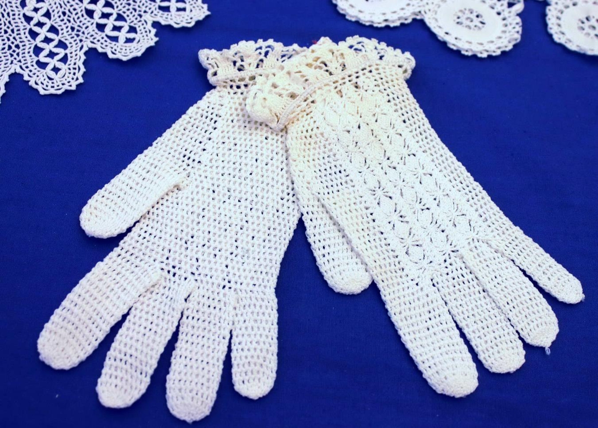 Fingravettlingar heklaðir úr hvítu heklugarni. - Saga: Magdalena Einarsdóttir var 78 ára gömul þegar hún heklaði vettlingana. Hún gaf Elísabetu Sigurgeirsdóttur þá í jólagjöf. Hlutinn gerði Magdalena Einarsdóttir frá Síðu Gefandi Elísabet Sigurgeirsdóttir, Blönduósi
