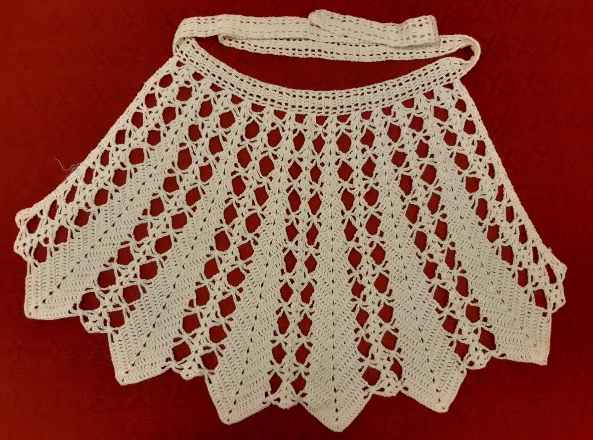 Hvít svunta hekluð úr bómullargarni. Hekluð með pinnahekli.