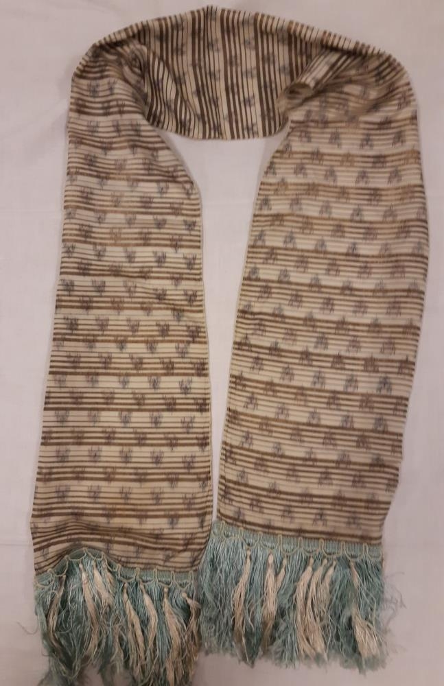 Saga: Ingibjörg Þórunn Jóhannsdóttir (1891-1950) frá Ísafirði átti slifsið. Gefendur eru dætur hennar Þóra og Elísabet Sigurgeirsdætur á Blönduósi.