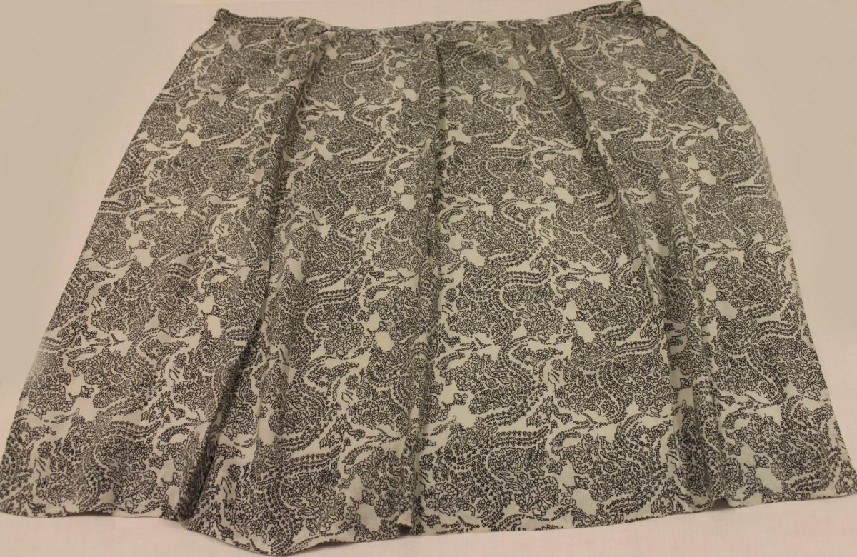 Grámunstruð silkisvunta með svörtu munstri. Svuntan er öll handsaumuð.
