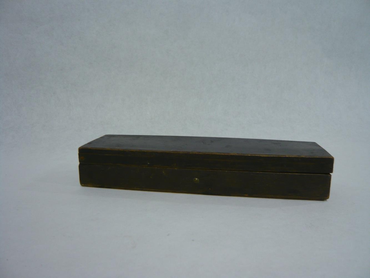 Pennastokkurinn er dökklitaður að utan en ljós að innan. Í stokknum var penni og er hann nú númeraður "BH-0000-104".