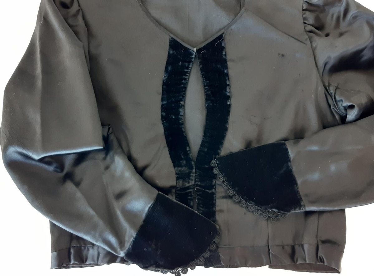 Peysufatapeysa - Peysa úr svörtu satíni. Blúnda framan á ermum. Stokkurinn er sérstaklega fallegur.