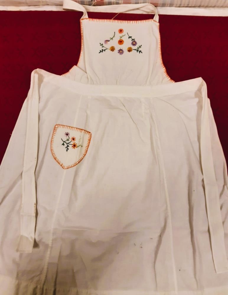Saga: Jóhanna Ísleifsdóttir (1887-1980) saumaði svuntuna. Hún var mikil vinkona Signýjar Benediktsdóttur sem var móðir gefenda, þeirra Geirlaugar og Elsu Ingvarsdætra. og kom oft í Balaskarð. Þær kynntust í kaupavinnu í Svartárdal.