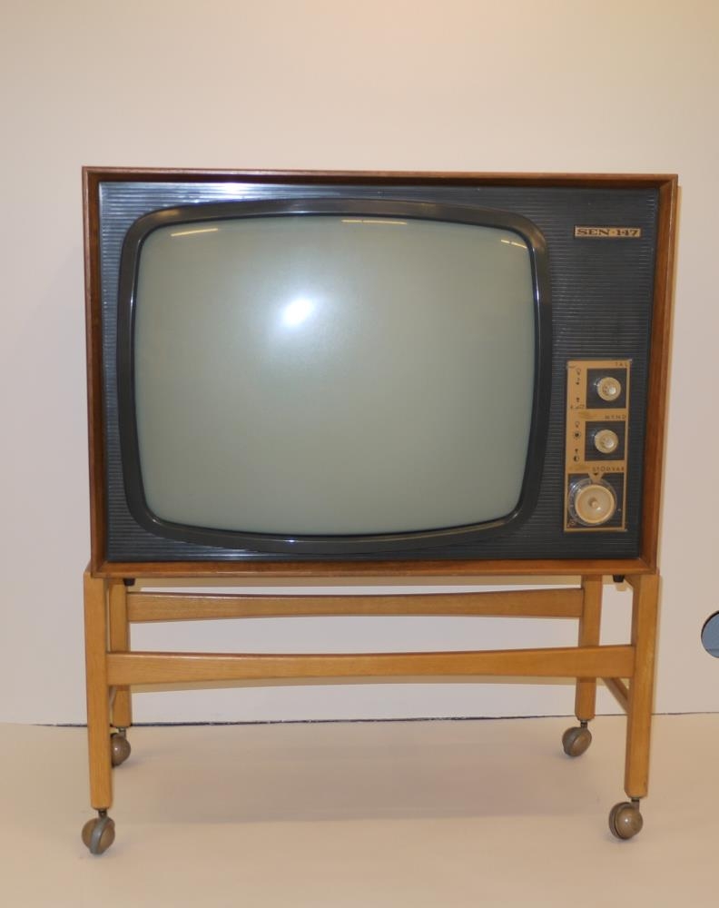 Sen sjónvarp ásamt lausri hjólagrind.