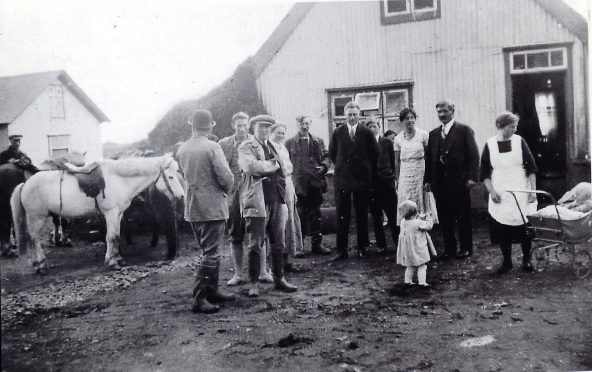 Á hlaðinu á Kirkjubæjarklaustri 1940. T.v. Lárus Helgason. Siggeir sonur hans á miðri mynd.