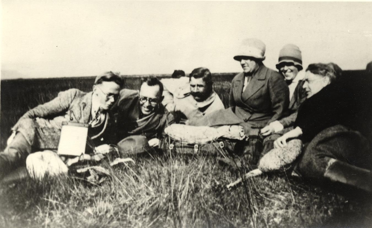 Útivist á sumardegi. Helgi P. Briem sendiherra, Jónas Jónsson frá Hriflu, óþekktur, Guðrún kona Jónasar, Sólveig og Doris Milfred Parker