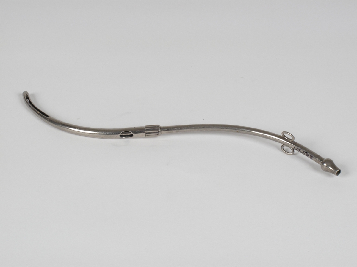 Fritsch-Bozemans uterin katheter (sbr. lærebog í Kirugi III, 163 fig. 8). Diam: 6 mm. Krómuð og ómerkt. Sjá: NS-36 og V Mueller og & Co, G S 615. Aesculap I, F-5265 Uternsspuhlkalheter nach Bozemann-Fritsch. Úr eigu Péturs Jakobssonar próf. Sjá: Blöndal/Jónsson I 1970, bls. 646. Gunnlaugur Snædal dr.med. afhenti.