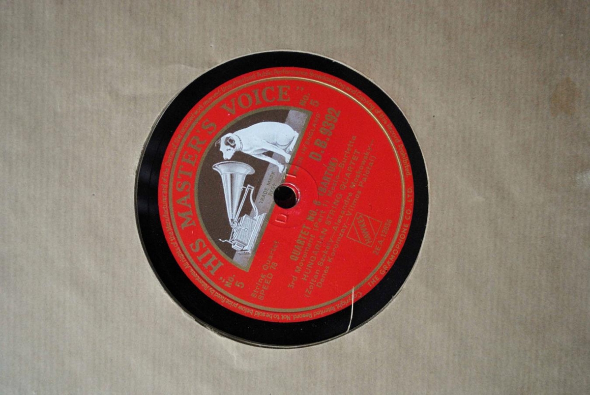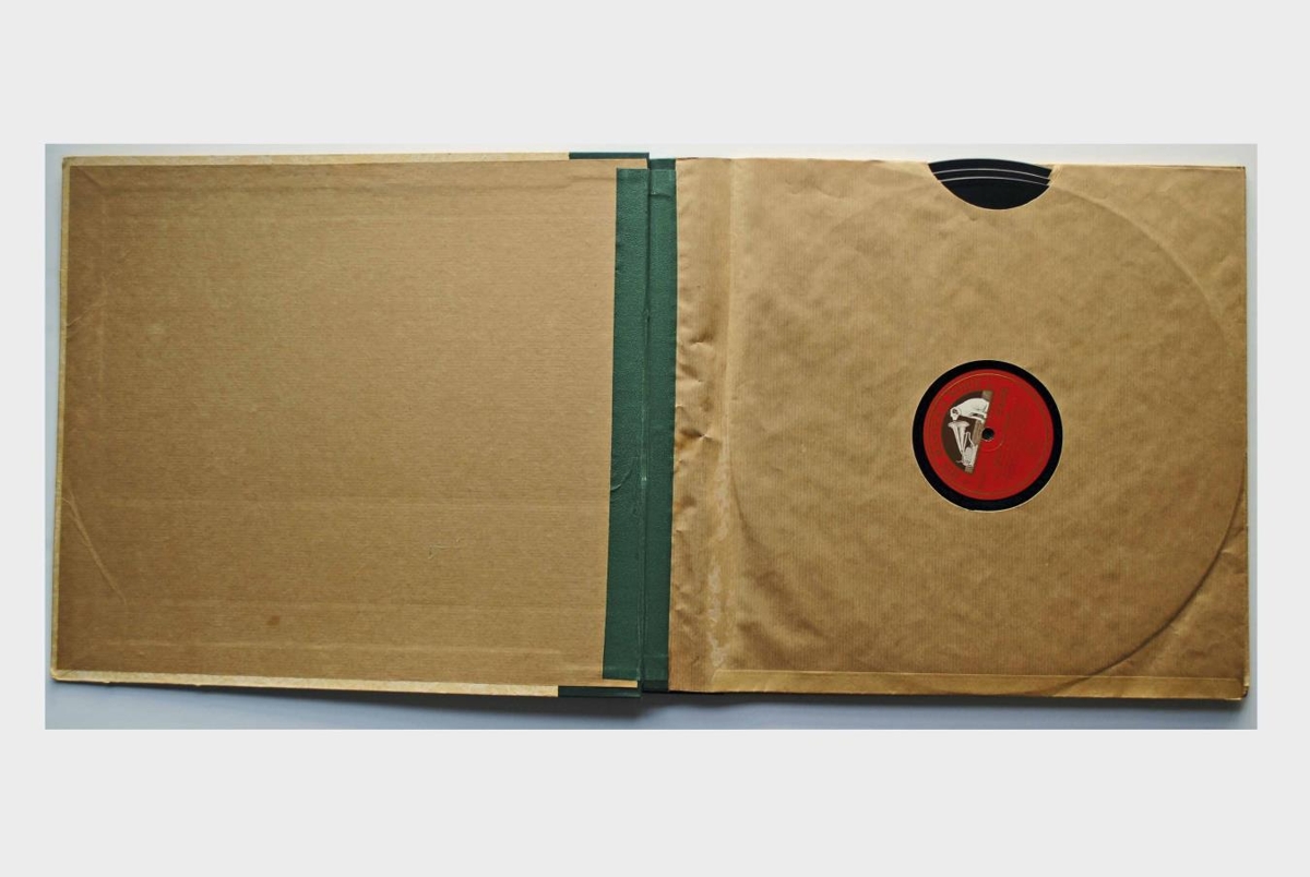 Pappamappa með vösum fyrir sex hljómplötur. Í möppunni eru fjórar 12 tommu hljómplötur með sjötta strengjakvartett Béla Bartók. Ekki er vitað hvort upprunalegt umslag er glatað eða hvort plöturnar hafi alltaf átt heima í möppunni.