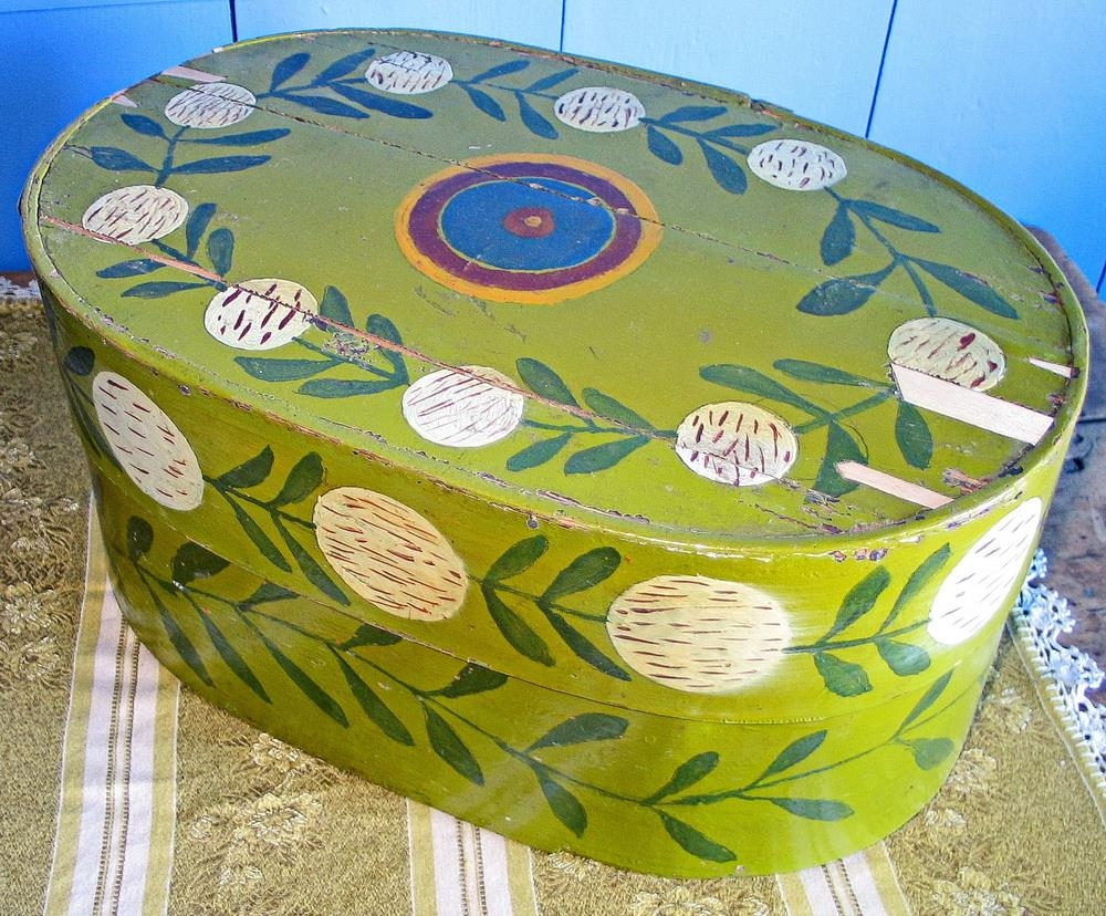 Tína úr furu, með þunnu girðisefni, sporöskjulaga. Lengd 41 cm, breidd 25,2 cm. Lokið er saumað saman með tágum en botninn (askjan) er samansaumuð með margföldu sláturgarni. Tínan er græn að lit, með grænum laufateinum umhverfis botninn, en með grænum laufblöðum og hvítum „kúlum" sem í eru rauðar slettur. Undir grænu málningunni sést móta fyrir bleik-rauðri þunnri málningu. Sennilega er tínan innflutt á 19. öld og hefur fengið þessa yfirhalningu um miðja 20. öld. Á botni öskjunnar er skráð með blýanti: „Fjóla“. Tínan er úr búi Fjólu Stefánsdóttur á Minni-Ökrum. Gert hefur verið við hana áður, og hún máluð. Áletrunin („Fjóla”) er sennilega frá þeim sem gerði við tínuna og málaði (nafn þess sem gerði við er óþekkt). Tínan er nýviðgerð, lokið var allt sundursprungið þegar tínan kom á safnið, þannig að heilt spjald hefur verið fellt inn á lokið. Bragi Skúlason trésmiður gerði við gripinn