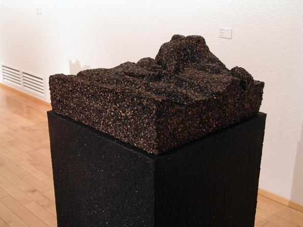 Stefán seeks inspiration in paintings of Vífilsfell hill: Evening Sunlight on Vífilsfell, 1932, and Moss at Vífilsfell, 1940, by Kjarval, the grand old man of Icelandic art. One was painted in overcast, rainy weather, and the scent of the moss can almost be smelt; the other in the warm rays of the evening sun. Kjarval had an extraordinary bond with the land, and in this work Stefán puts himself in Kjarval’s footsteps at the foot of the hill. We see a photograph of the artists surveying the land, while in the three-dimensional works the artist has transformed the landscape into tangible sculptures of bronze, steel, rubber and plaster. This allusion to Kjarval’s work opens up a new approach to his work, and also a way towards a dialogue with art history. Our love for our country is manifested in innovative ways in the work of contemporary artists, who constantly seek out new paths in their interpretation, and their quest for a bond with nature. RP