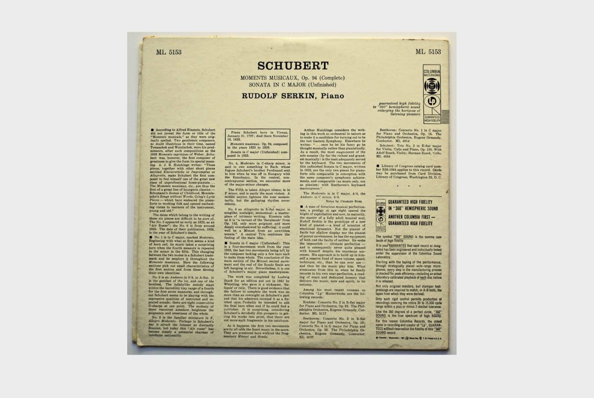Píanóleikarinn Rudolf Serkin leikur Moments Musicaux og Sónötu í C-dúr eftir Schubert.