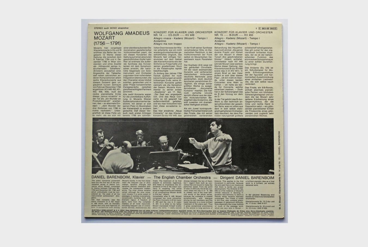Píanóleikarinn Daniel Barenboim flytur tvo píanókonserta eftir Mozart. Nr. 14 í Es-dúr KV 449 og nr. 15 í H-dúr KV 450.