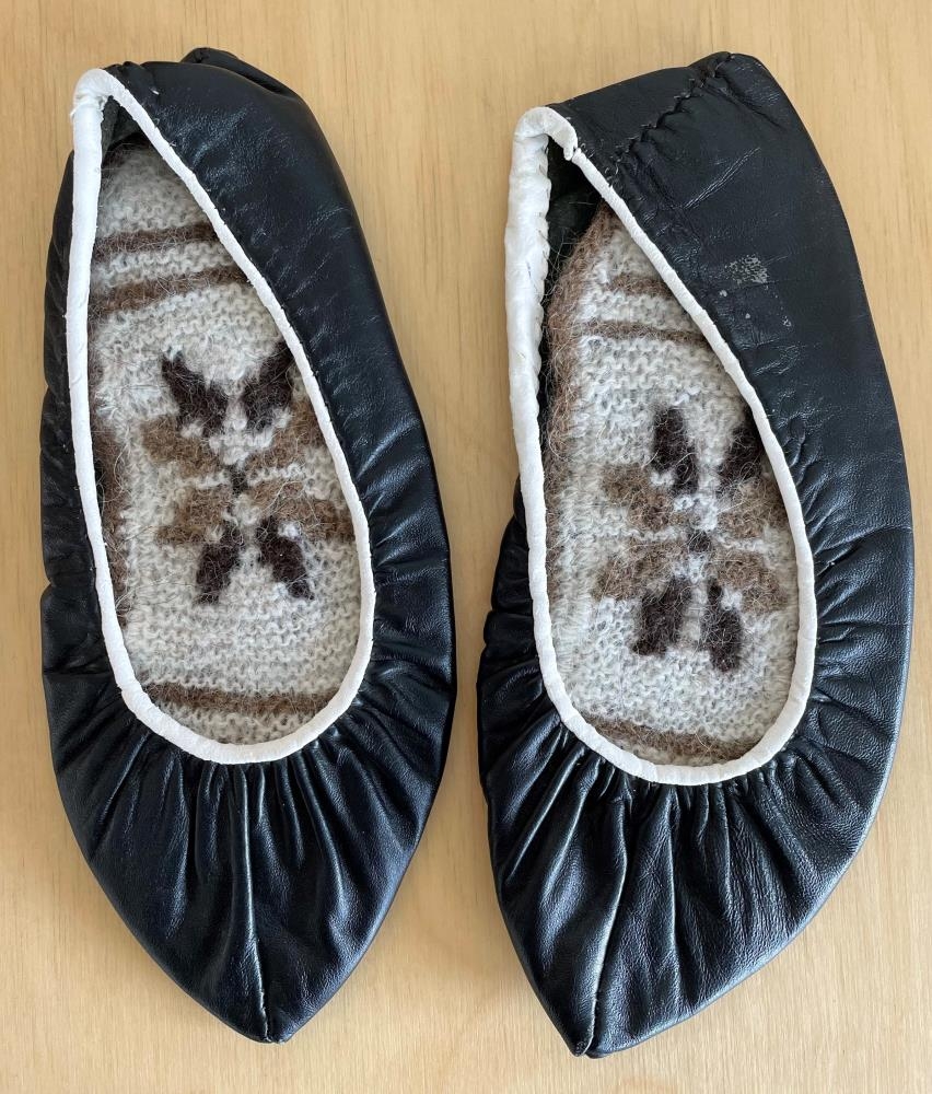 A og b eru svartir sauðskinnskór með hvítum bryddingum.