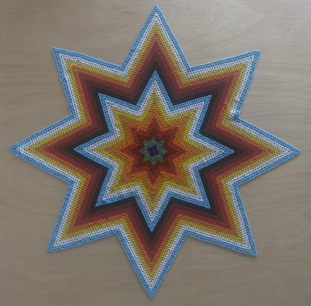 Dúkur, stjörnulagaður - marglitur - yst ljósblá rönd , þá hvít, gul, appelsínugul, rauð, brún, svört, blá, hvít, gul, gulbrún, appelsínugul, rauð, brún, græn og innst er blá lítil stjarna. Dúkurinn er varðveittur fyrst og fremst þ.s. hann líkist mjög íslenskum hekluðum dúkum en einnig vegna mögulegrar rannsóknavinnu á grænlensku og íslensku handverki.
