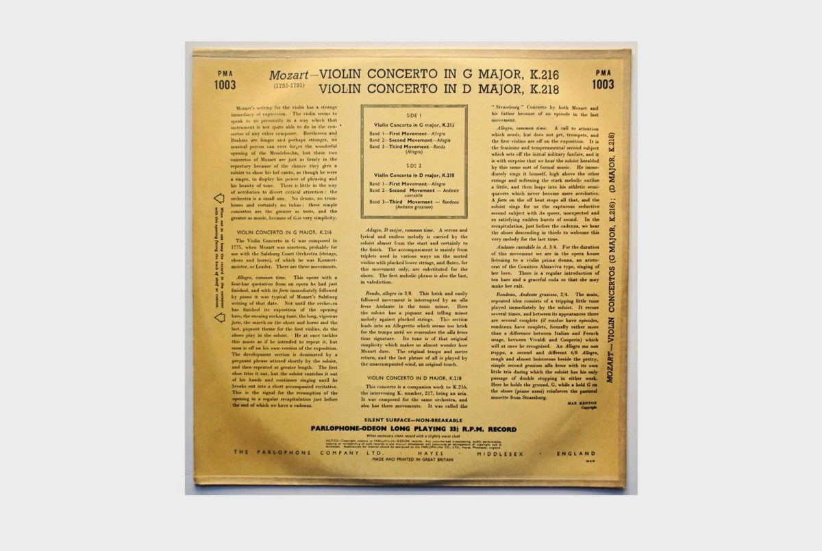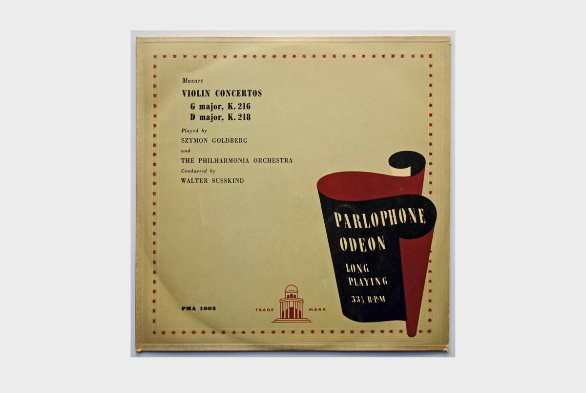 Tveir fiðlukonsertar eftir Mozart (K. 216 og K. 218) í flutningi Szymon Goldberg, fiðluleikara og Fílharmónunnar undir stjórn Walter Susskind.