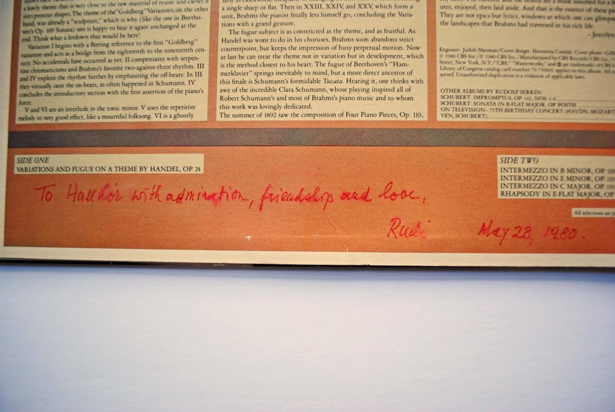 Rudolf Serkin sem heimsótti Gljúfrastein og lék þar á flygilinn hefur sent Halldóri þessa plötu ásamt fleirum í safninu.