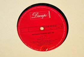 Matteusarpassían (BWV 244) eftir Bach á þremur 12 tommu hljómplötum. Einsöngvarar eru: Karl Erb, tenór, Gerhard Hüsch, baritón, Tiana Lemnitz, sópran, Friedel Beckmann, alt og Siegfried Schulze, bassi. Der Thomanerchor og Das Gewandhausorchester í stjórn Günther Ramin. Upptakan fór fram í Leipzig árið 1941.
